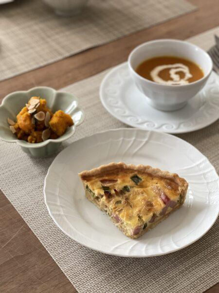 長ねぎとベーコンのキッシュ、かぼちゃのサラダでした。