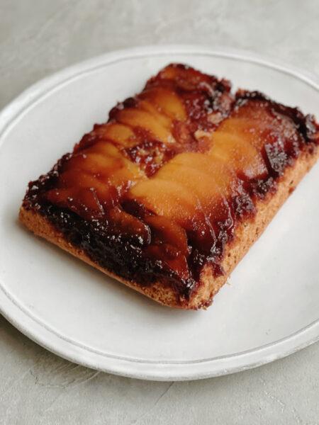 キャラメルソースを敷いて洋梨を並べて、とアップサイドダウンは少し手間がかかる上、ひっくり返すまでのちょっとした緊張感もあり、ハードルが高いんですよね。