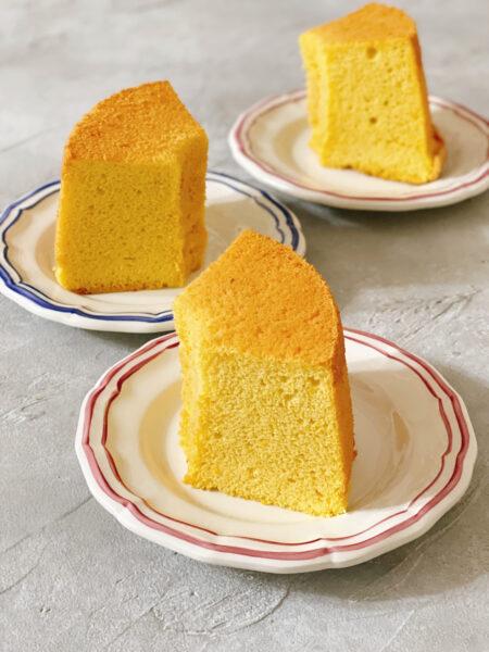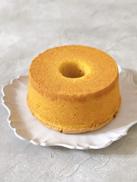 かぼちゃやさつまいも、バナナなどのシフォンケーキは、味のバリエーションを増やす上で大変魅力的ですが、このように重めの素材を加えるシフォンは配合が難しいですよね。