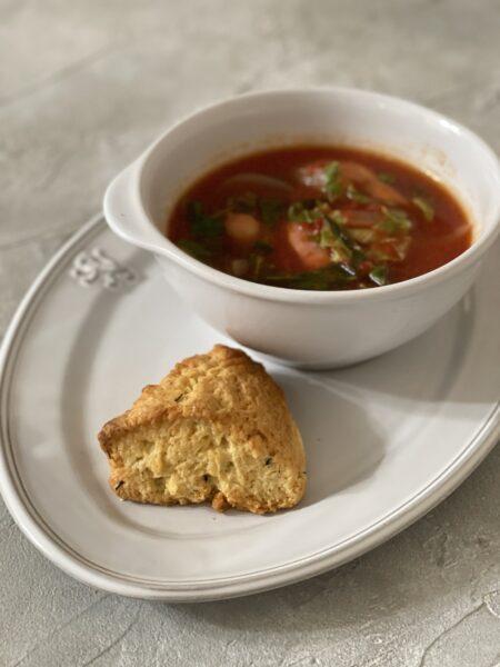 ランチでは、ハーブのスコーンを召し上がっていただきました。