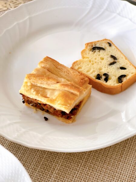 蒸したブロッコリーを添えてクリスマスらしく、ティースタンドにのせてみました。