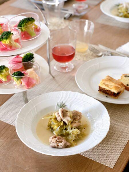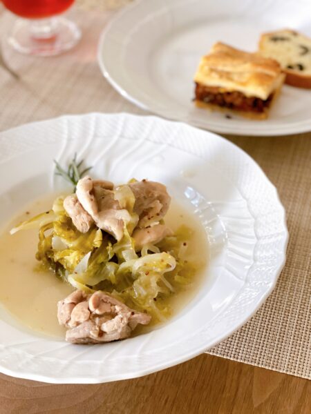 キャベツの甘みと白ワインの香りが溶け合った、軽やかでコクのある煮込み料理です。