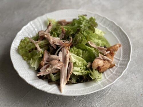 今朝は残ったチキンでサラダを作りました。