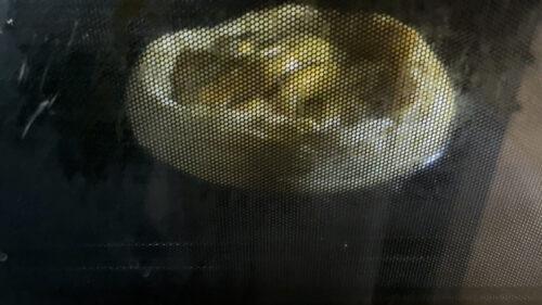焼いている途中、ガラス扉越しに見えるアップルパイ。