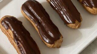 とても軽い仕上がりで、このままでも十分おいしいのですが、チョコレートクリームでコーティングしてみました。熱すぎても冷めすぎても扱いにくいので、温度調整してからコーティング。