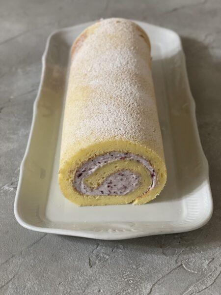 クリームチーズを加えたスポンジで、ブルーベリークリームを巻き込みました。